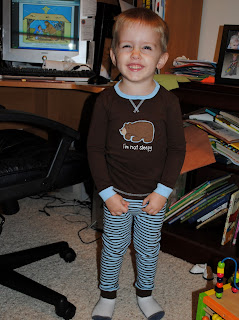 Getting ready for bed tonight in our new bear pj's that Daddy hasn't seen us in yet. We also love these, obviously.